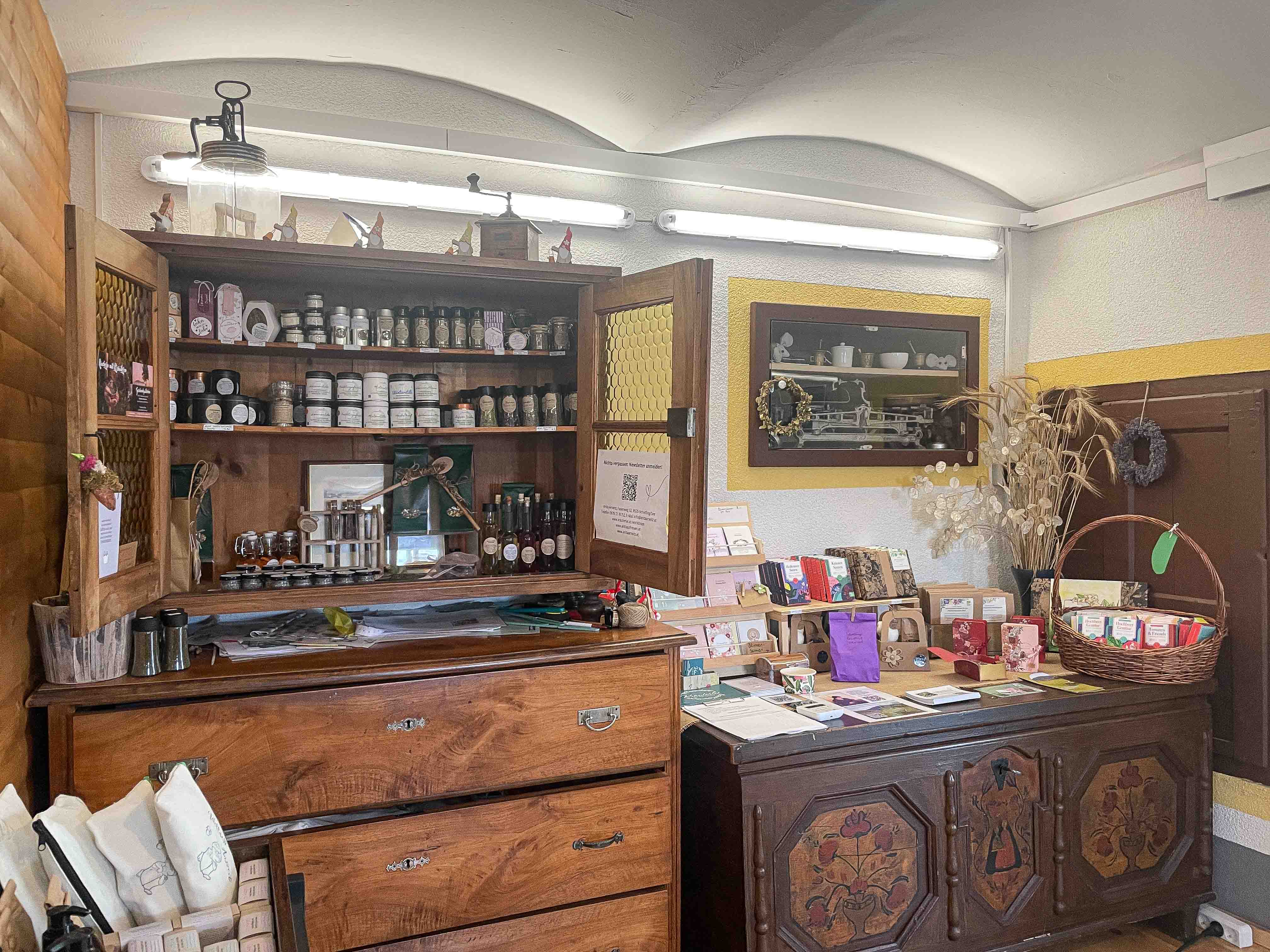 Mein Produktsortiment verändert sich laufend. Immer wieder gibt es neue Produkte. Also nehmt euch ruhig Zeit zum Gustieren. Es gibt viel zu entdecken. Bar- und Kartenzahlung möglich.