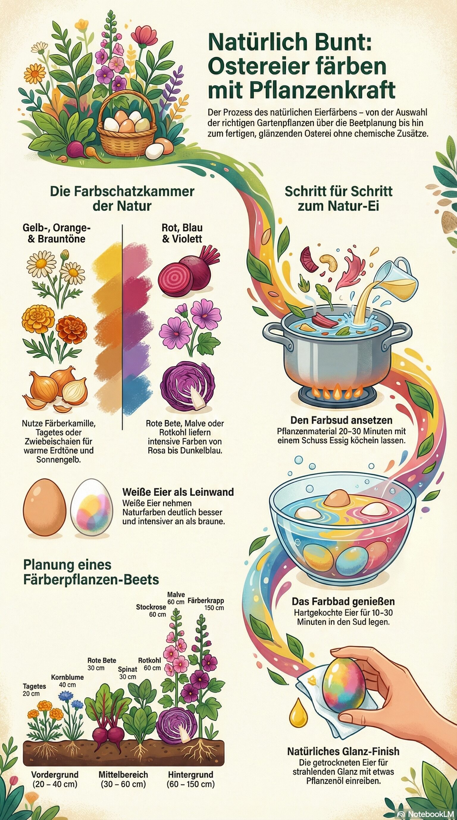 Vergiss Chemie. Ostereier färben mit Pflanzen ist einfach. Tipps mit Pflanzplan, Farbübersicht und praktischen Konservierungstricks.